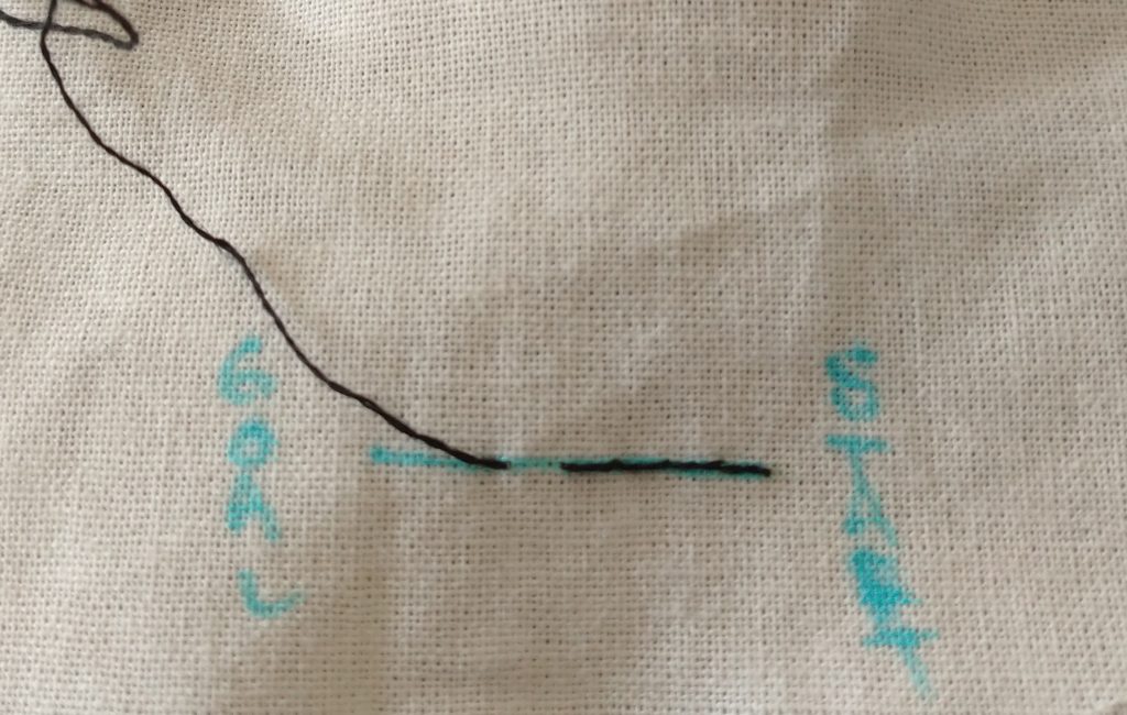 3本取りのバックステッチで刺していきましたが、ちょっと糸が太すぎて子供っぽい仕上がりになってしまいました。
